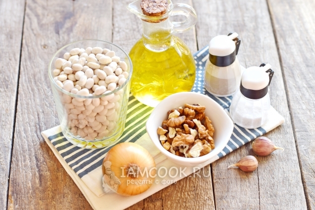 Паштет из фасоли делают в разных вариациях. Можно все ингредиенты перемолоть до пастообразной массы кремовой консистенции, или приготовить паштет с ощутимыми кусочками орехов.