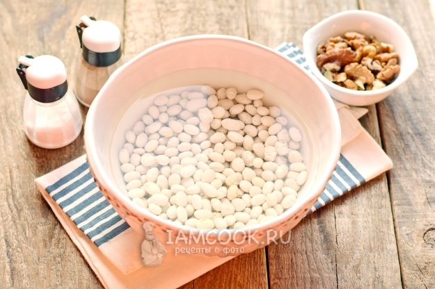 Сухую фасоль переберите и тщательно промойте. Чтобы немного сократить время варки, заранее замочите ее в воде на ночь, за этот период зерна набухнут. Слив воду, залейте фасоль свежей водой — жидкость должна покрывать зерна примерно на 4 см. В зависимости от сорта бобовой культуры период варки составляет от 60 до 90 минут.
