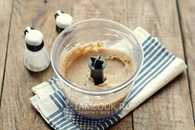 Все ингредиенты небольшими порциями поместите в контейнер блендера, влейте немного отвара из-под фасоли. Содержимое кухонной машины перебейте на высокой скорости в несколько подходов. Одновременно регулируйте необходимую густоту паштета, по чуть-чуть подливая отвар. Также в этот момент массу можно приправить солью и другими специями на ваш вкус. При желании блендер позволительно заменить мясорубкой, пропустив состав несколько раз через сито для самой мелкой фракции.
