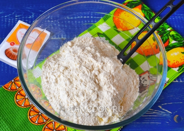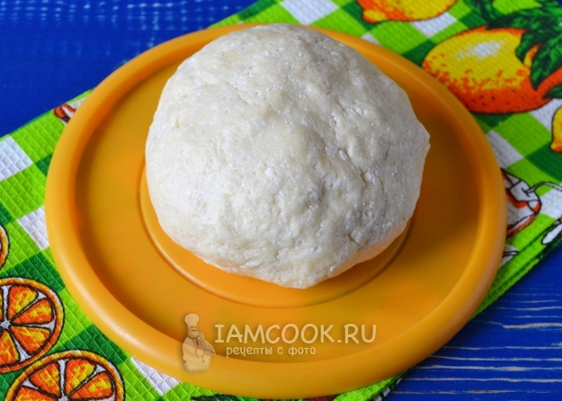 Замешиваем колобок творожного теста. Тесто не должно быть слишком тугим. Отправляем колобок на 30 минут на верхнюю полку холодильника.
