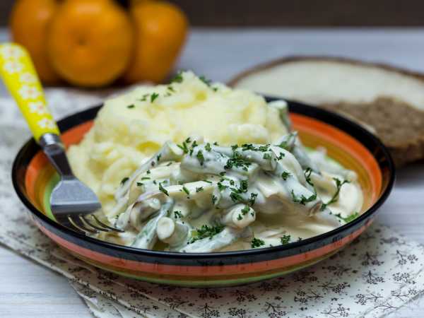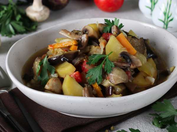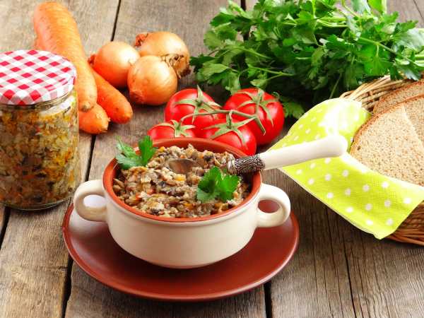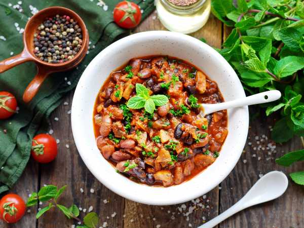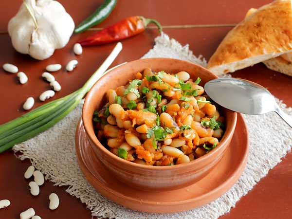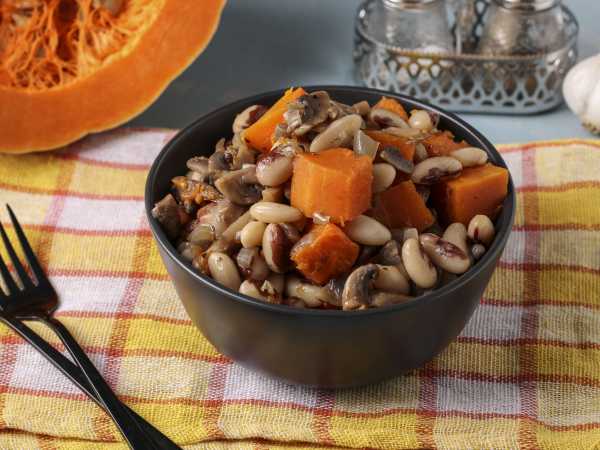 Тушенная с грибами и орехами фасоль в горячем виде может стать самостоятельным вторым блюдом без мяса, а в холодном состоянии — отменной закуской к любому гарниру или мясному продукту.