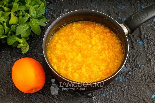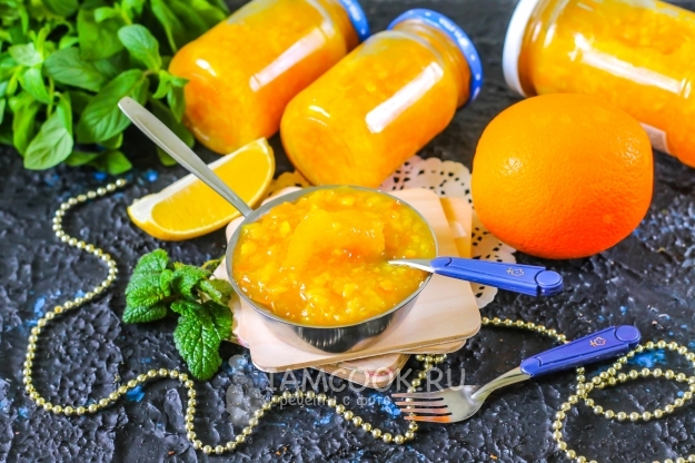 Разложите апельсиновый конфитюр в горячие банки и закупорьте.