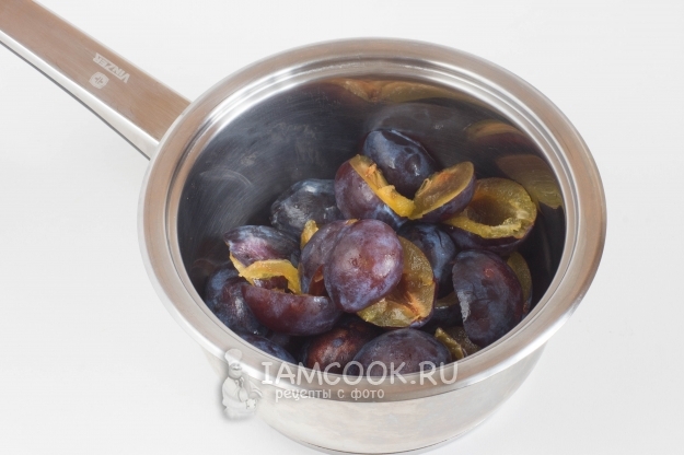 Сливы промойте, разделите на половинки, удаляя попутно косточки.