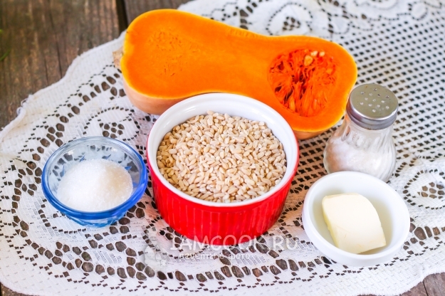 Итак, подготовьте для приготовления перловой каши с тыквой в мультиварке необходимые ингредиенты и начнем кулинарить!