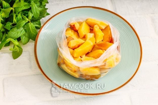 Выложите запеченные кусочки айвы в пакет и плотно завяжите, отправьте в морозилку.
