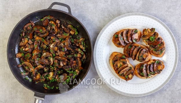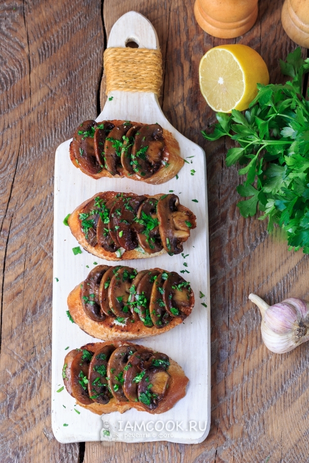 Брускетта с грибами готова. Приятного аппетита!
