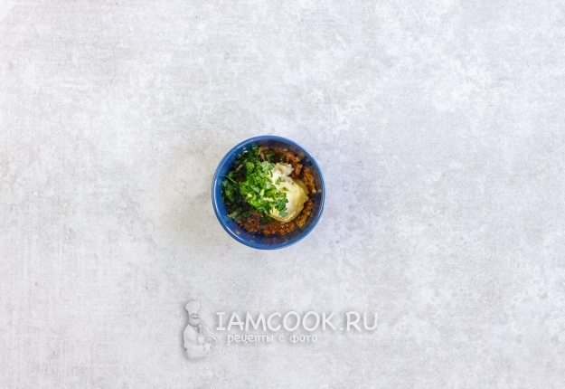 Выключив огонь, добавьте нарезанную петрушку (сохранив 1 ч.л. для приготовления чесночного масла), черный молотый перец и соль по вкусу. Тщательно все перемешайте.