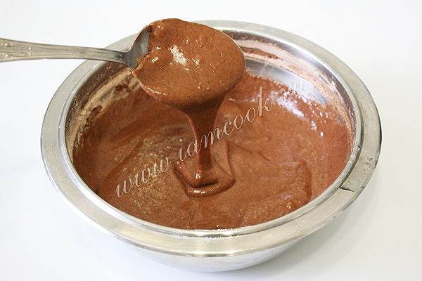 В сухой смеси сделайте углубление и вылейте в него жидкие компоненты. Хорошо размешайте.