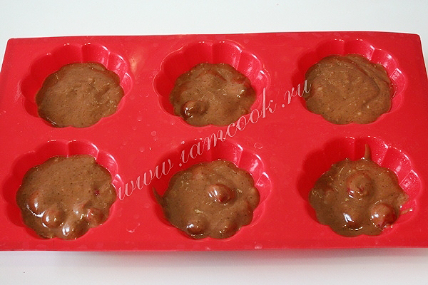 Выложите тесто в формы, наполняя их примерно на 1/3.