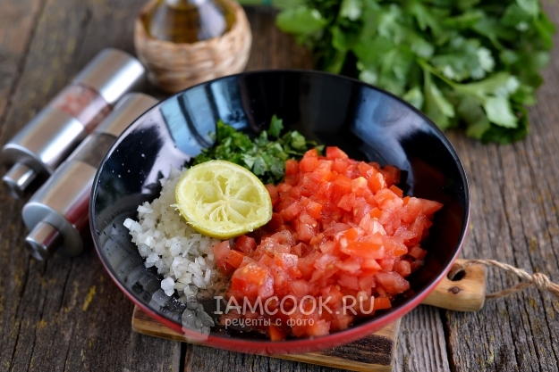 В мексиканской кухне есть два вида популярной на весь мир томатной сальсы - salsa roja, которую варят из томатильо, то есть овощного физалиса, и pico de gallo, который подают в сыром виде в качестве закуски к начос, тортилье, такос и т.д., а также к мясу и рыбе. Еще очень вкусно подсушить пару ломтиков хлеба и подать томатную сальсу как кростини или брускетту.