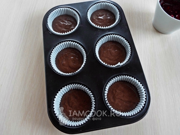 Тесто разложить в бумажные формы до половины или на 2/3.