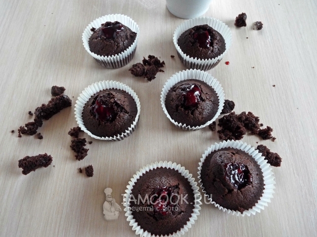 Я предлагаю приготовить десерт - вкусные шоколадные маффины с вишней. По рецепту выходит 12 небольших маффинов.