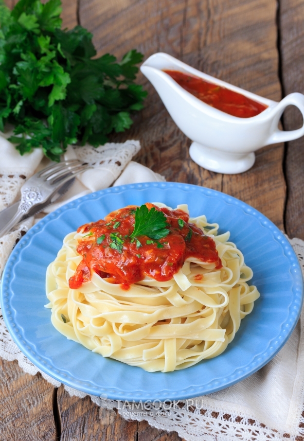 Если томатная паста сама по себе не обладает насыщенным вкусом или ее концентрация ниже 25% (указывается на упаковке), количество томатной пасты стоит увеличить до 3 ст.л.