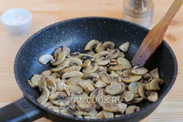 Обжарим на сковороде грибы, приправим их солью и перцем.