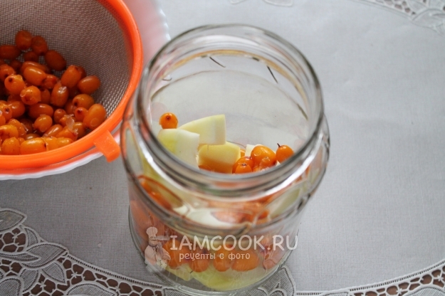 Простой рецепт заготовки кабачков с облепихой под ананасы. У нас распространен был такой рецепт в виде компота. Если вас интересуют сами получаемые из кабачков ананасы, то просто нужно взять поменьше заливки и побольше ягод и кабачка.