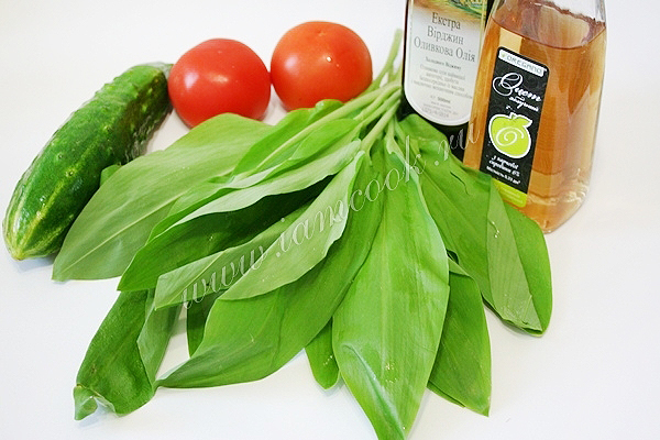 Черемшу также называют «Дикий чеснок». Она обладает легким чесночным ароматом, благодаря которому её часто добавляют в салаты, пекут с ней хлеб, используют в приготовлении первых блюд. Черемша – зелень, которую издавна считали целебной. Её рекомендовали использовать во время эпидемий чумы, холеры, лечили ей кишечные заболевания, использовали как противомикробное и противоглистное средство. Черемшу собирают только в апреле-мае, пока не распуститься её цветок. Считается, что черемша прекрасно пополняет организм витаминами, дефицит которых возник в организме за зимний период. Салаты с черемшой можно готовить всевозможные. Самый простой салат из помидор, огурцов и черемши. Также по желанию можно добавить отваренные вкрутую яйца, зелень укропа и петрушки.