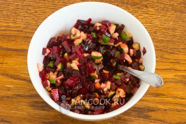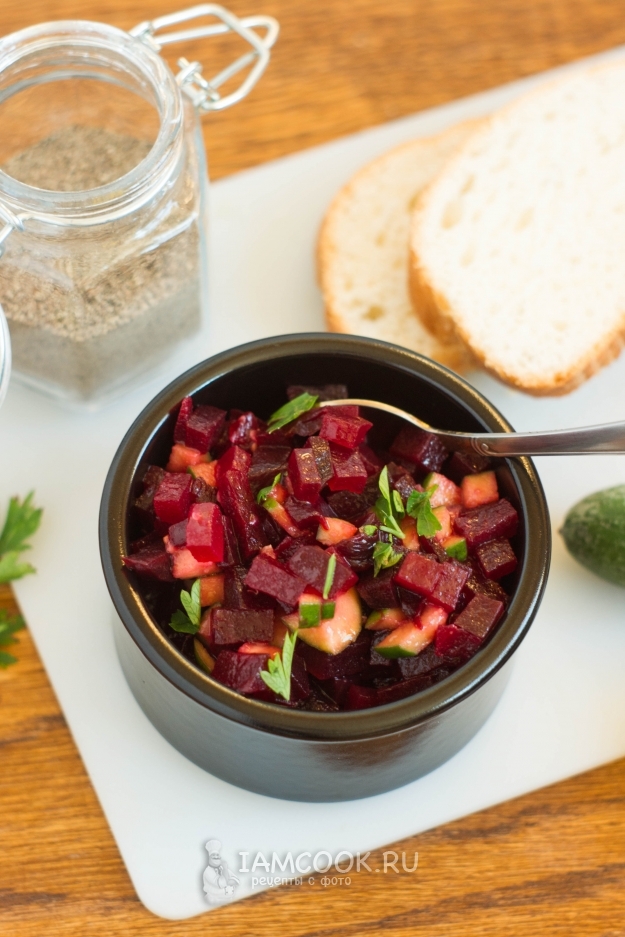 При наличии готовой свеклы салат готовится по сути за считанные минуты.