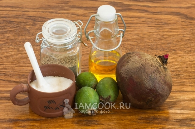Заправку для салата из свеклы и фейхоа можно использовать любую, начиная от майонеза и заканчивая сложносочиненными авторскими. Наиболее доступный и простой вариант - обычное растительное масло (конечно же, лучше оливковое) и соль с черным молотым перцем.