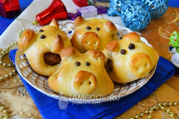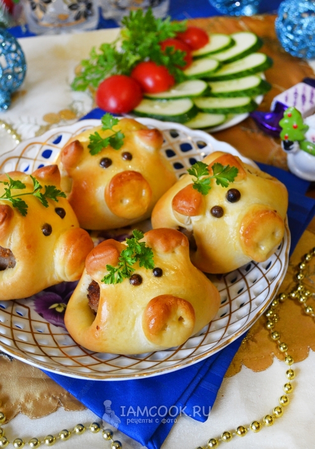 Я тоже не теряю времени зря – репетирую новогоднюю выпечку. С радостью представляю обожаемое блюдо моей семьи – котлета в тесте. Котлета у нас сегодня волшебно-символическая в форме забавной хрюшки. Котлета в тесте «Забавная хрюшка» не содержит в своем составе свинину. Волнение в сторону! Виновница-свинья - символ 2019 года - останется в целости и сохранности.