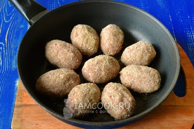 Шарики раскатываем в котлеты. Обваливаем в сухарях.