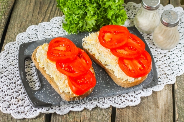 Бутерброды с помидором, сыром и чесноком можно подать и на праздничный стол, и в будни - они очень быстро создаются, остаются сочными и вкусными в течение длительного времени. В сезон сбора спелых томатов такое блюдо можно готовить хоть каждый день, пока оно не надоест. Главное - выбирать спелые помидоры мясистых сортов, а не сочных. Майонез, кстати, может содержать чесночную отдушку, тогда вам не придется добавлять свежий чеснок в сырную массу. Также можно воспользоваться сушеным молотым чесноком - к примеру, в зимнее время, когда свежие овощи трудно найти в продаже.