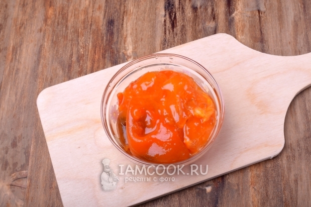 С хурмы снимем тонкую кожицу и удалим косточки, если они есть.