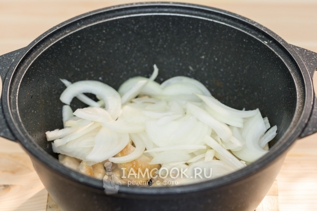 Добавим лук, нарезанный так, как нравится вам. Я нарезала перьями.