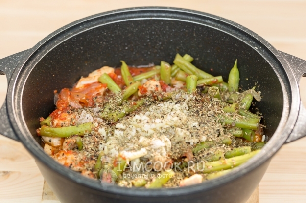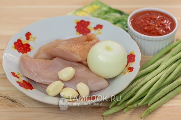 Для приготовления подливы из курицы со стручковой фасолью подготовим продукты по списку.