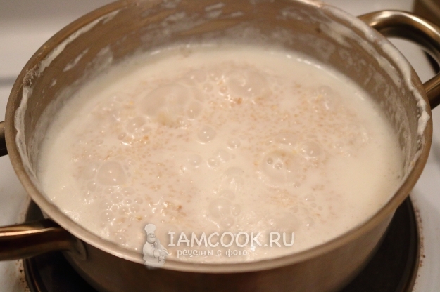 Возвращаем снова в кастрюлю, заливаем молоком и ставим на небольшой огонь.