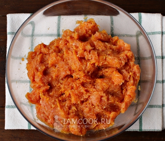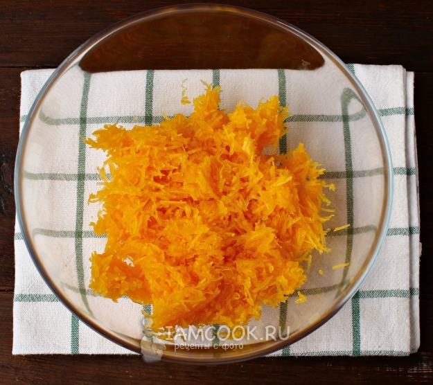 Мякоть тыквы измельчаем при помощи мелкой терки.
