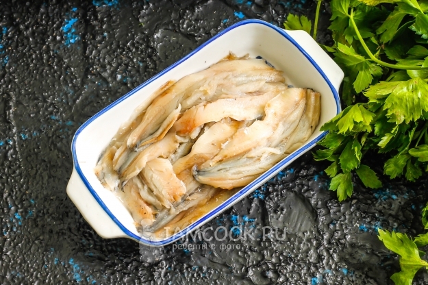 За это время промойте мойву. У каждой рыбки оторвите голову, удалите хребет с внутренностями и черной плевой (ее - обязательно, иначе получите горький привкус в блюде). Удалите подбрюшной плавник, хвост и плавник на спине, чтобы у вас в руках от тушки осталась только мякоть. Таким образом очистите всю мойву, промывая в воде.