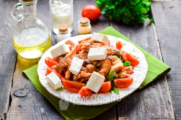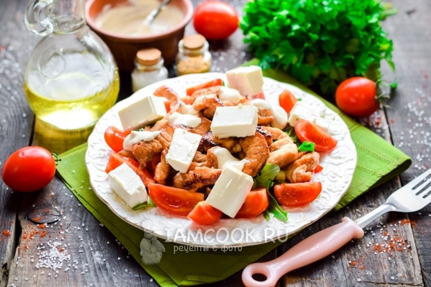Салат с жареной индейкой и йогуртовой заправкой готов. Приятного аппетита!