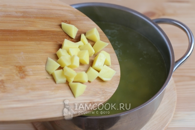 А в бульон добавляем порезанный кубиком остальной картофель, и варим дальше наш рассольник.