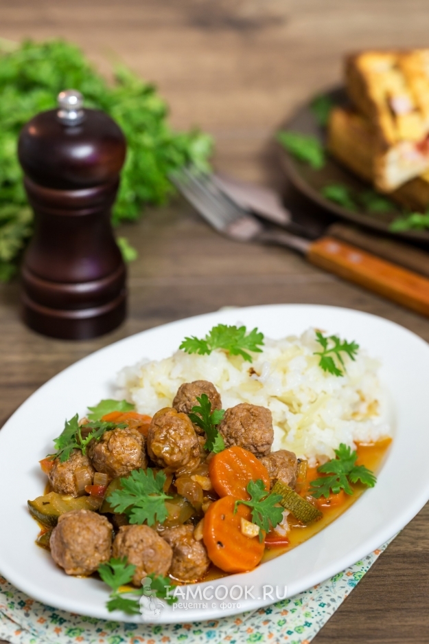 Для приготовления рагу с фрикадельками и овощами подготовим продукты по списку.