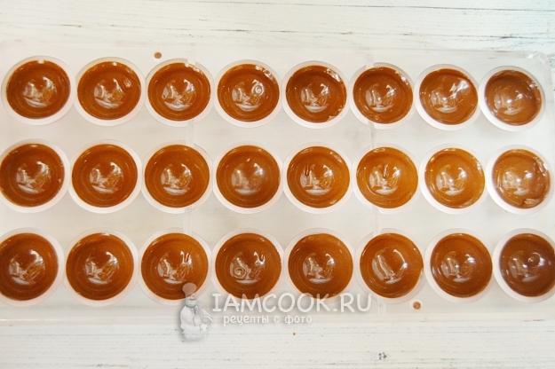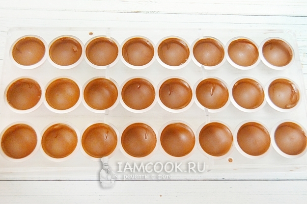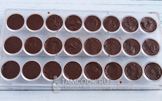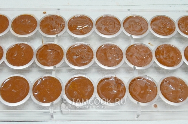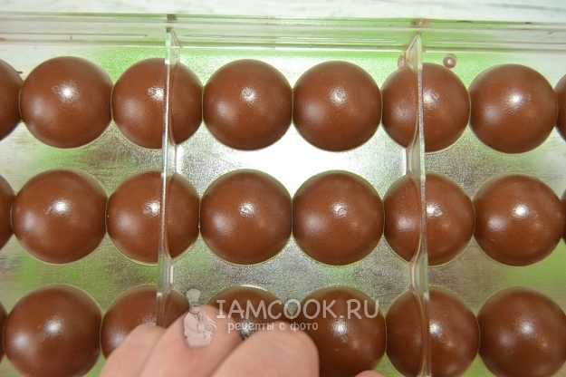 Ставим шоколад в холодильник до следующего дня. Если нет терпения до следующего дня, то можно поставить конфеты в морозилку, это существенно ускорит процесс.