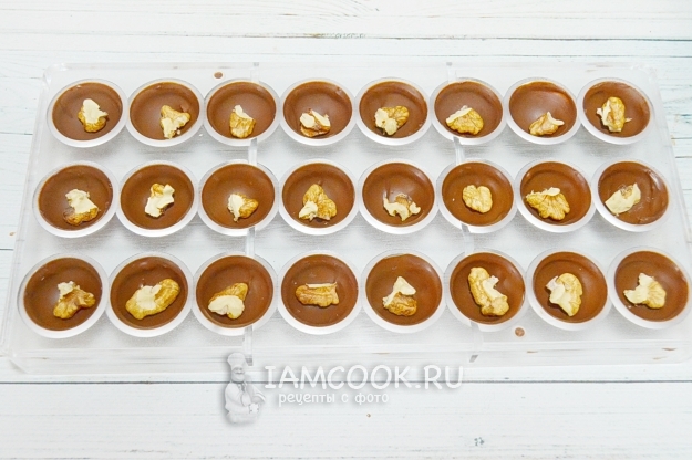 В каждую ячейку выложим по крупному куску грецкого ореха.