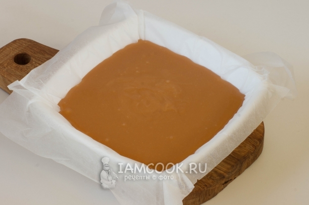 Переложите молочную массу в форму, застеленную качественной пергаментной бумагой, и на ночь оставьте в холодном месте.