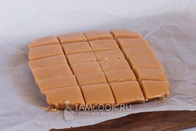 Нарежьте готовую молочную помадку на ломтики желаемого размера и подавайте к столу!