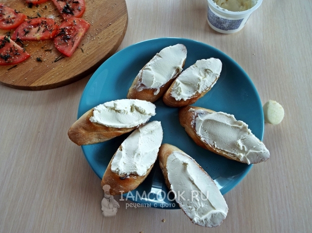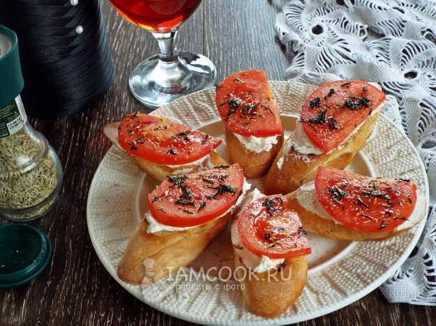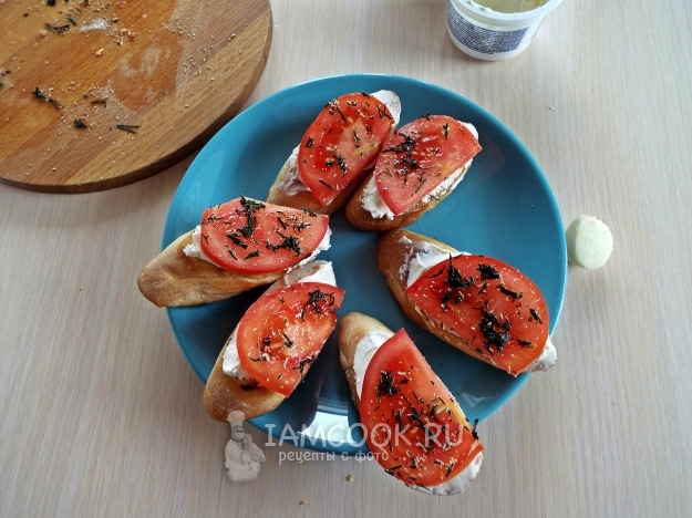 Пикантные бутерброды с творожным сыром и помидорами готовы.