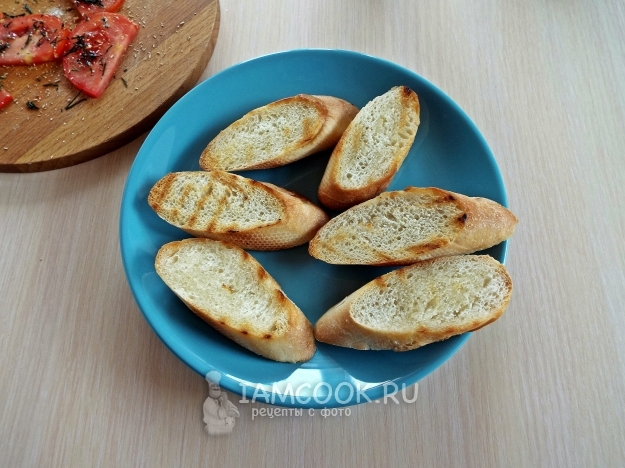 Хлеб можно и не обжаривать, а просто подсушить в духовке либо тостере или же оставить мягким - это кто как любит.
