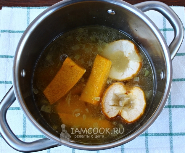 Добавляем запеченные яблоко и тыкву, доводим до закипания.
