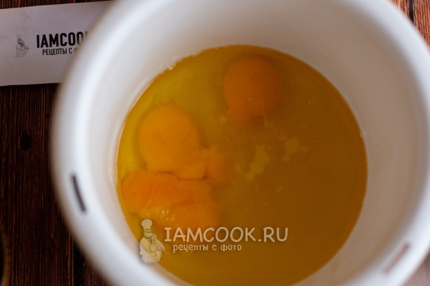 Теперь можно приступать непосредственно к тесту. Для этого в миске соедините масло, яйца и мед. Перемешайте венчиком.