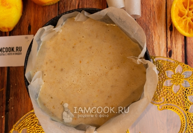 Внутрь формы вылейте тесто. И в духовку. Выпекать нужно около часа при температуре 160 градусов.