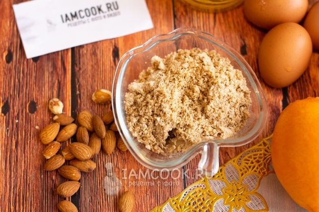 Дальше нужно добавить сухие ингредиенты: перемолотые орехи и муку. Перемешайте.