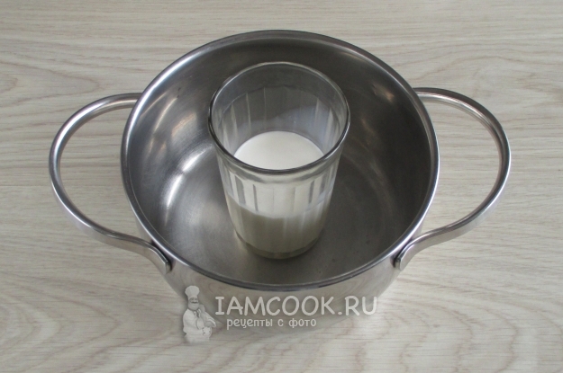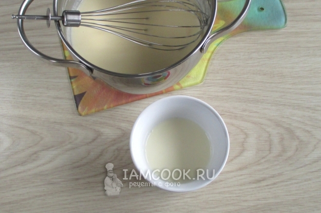 Отмерьте нужную порцию сливок, пару столовых ложек вылейте к желтку, а остальную часть - в кастрюлю.