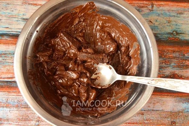 Спустя пару минут, шоколад начинает плавиться. Плавим его, постоянно помешивая.
