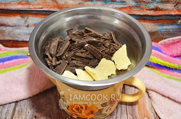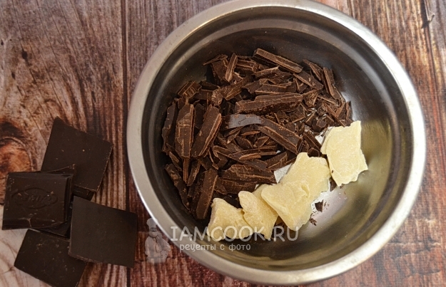 Ставим шоколад с какао-маслом на водяную баню и начинаем топить, перемешивая массу.