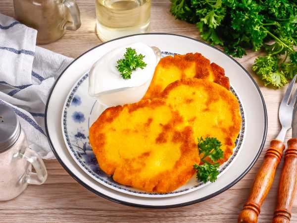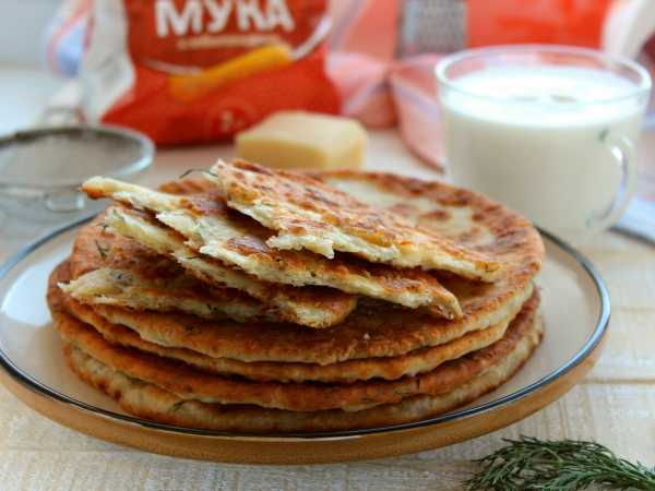 Благо и продуктов, и времени на них уходит совсем мало. Такие лепешки можно приготовить, если вдруг дома не оказалось хлеба: они - отличная ему замена! А также можно приготовить их на завтрак и подать со сметанным соусом.