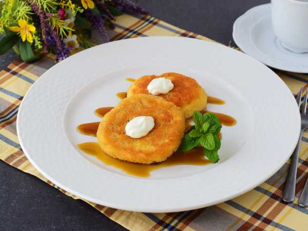 Раскалите масло и жарьте творожные лепешки на сковороде на малом огне с двух сторон до готовности.