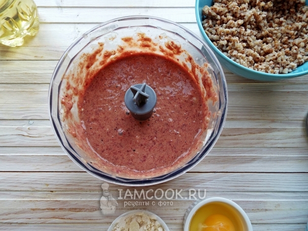 Лук измельчить в блендере.